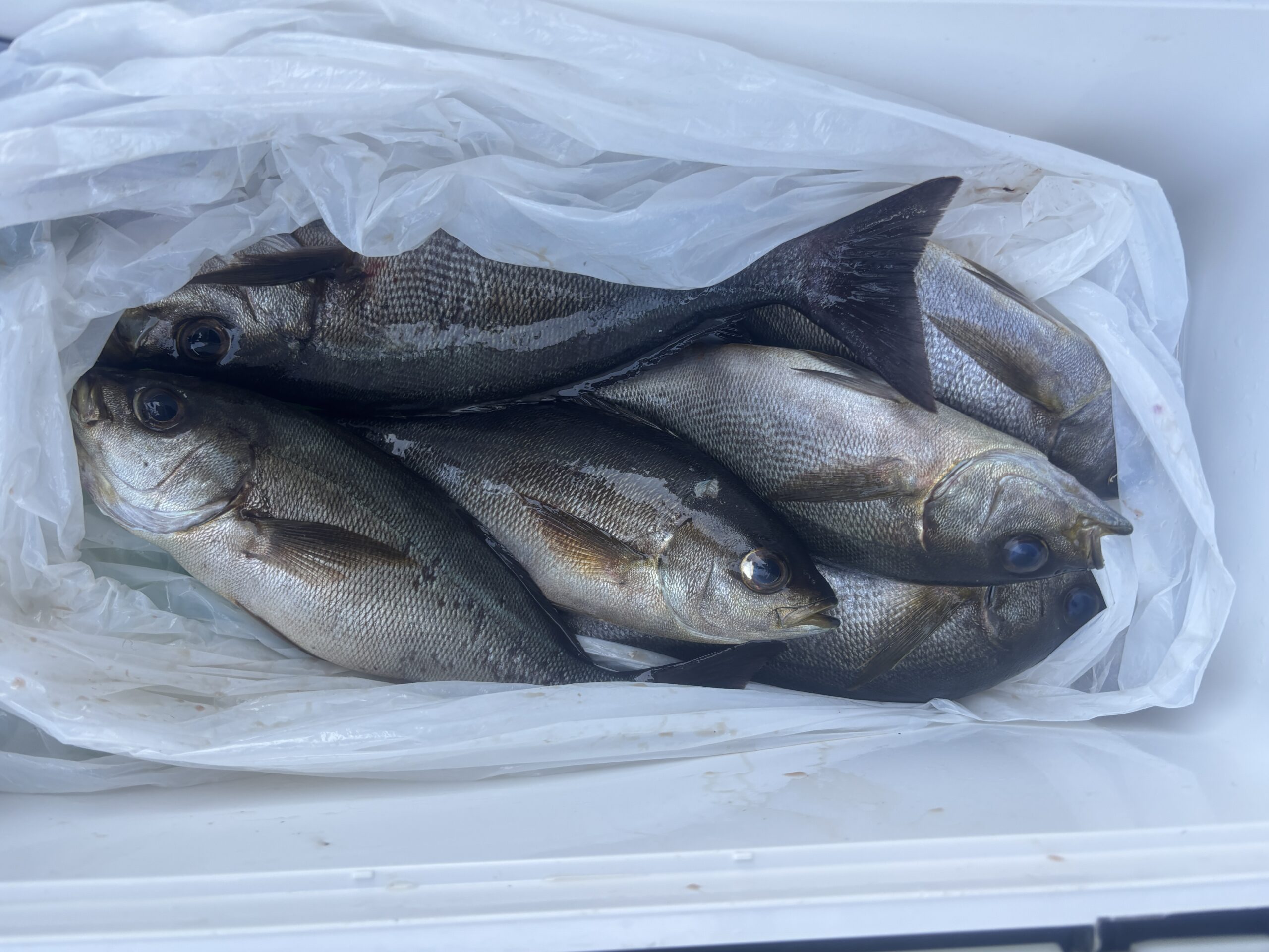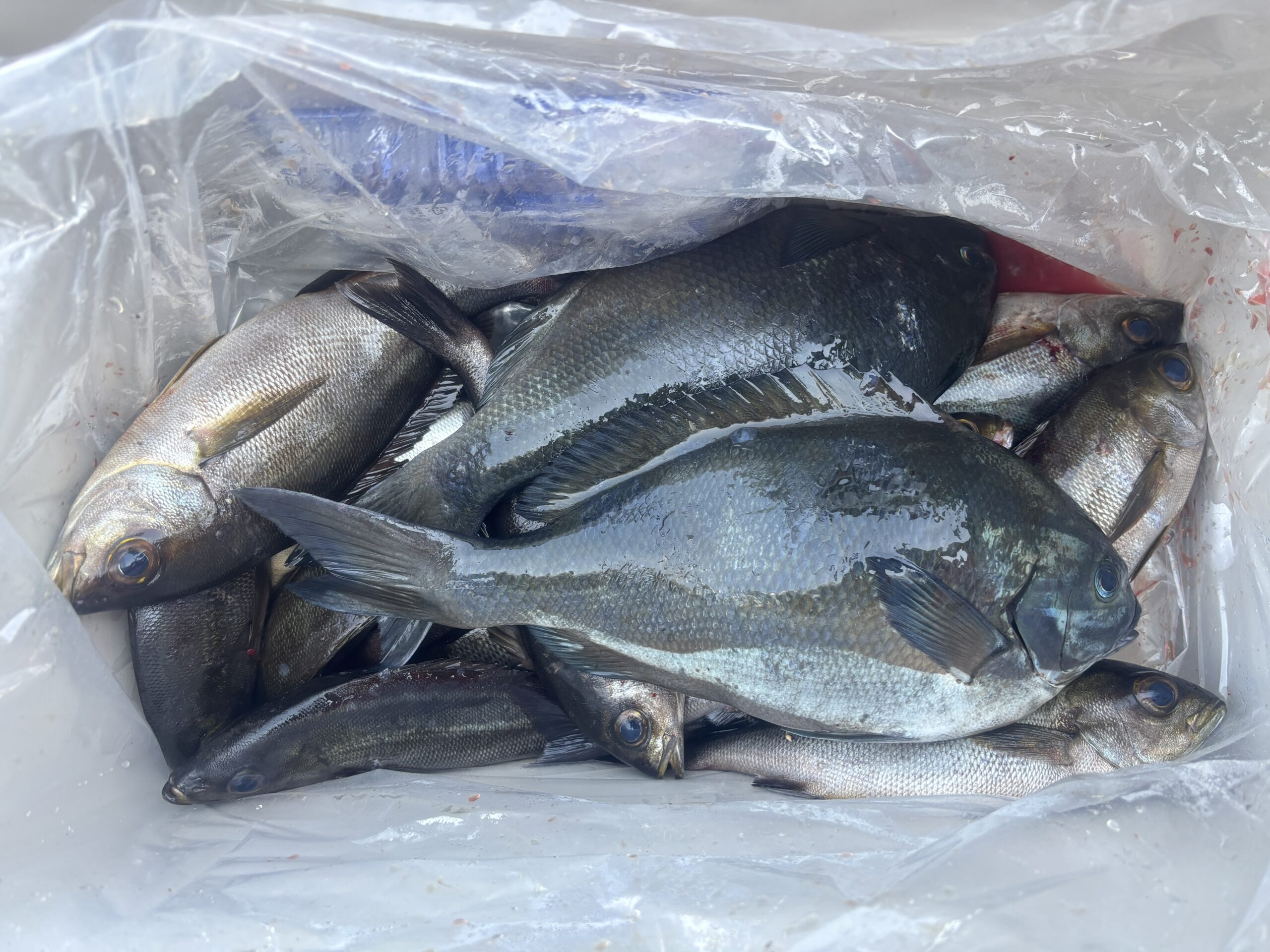 今日は朝方から終始トロトロの下り潮で風もそれほど無く良い凪でした、尾長メジナが食う棚は2ヒロから3ヒロで良く口を使います、イサキも同じで入れ食い状態が続きます🎣メジナの数はそれほど出ていませんが、それでもカリト鼻では尾長メジナの最大が出ました🎣水温が安定していませんが、これからフカセ釣りや青物の活性は上がっていく傾向にあると感じます、今日はルアーマンの方は居ませんでしたが新規の方大募集しております