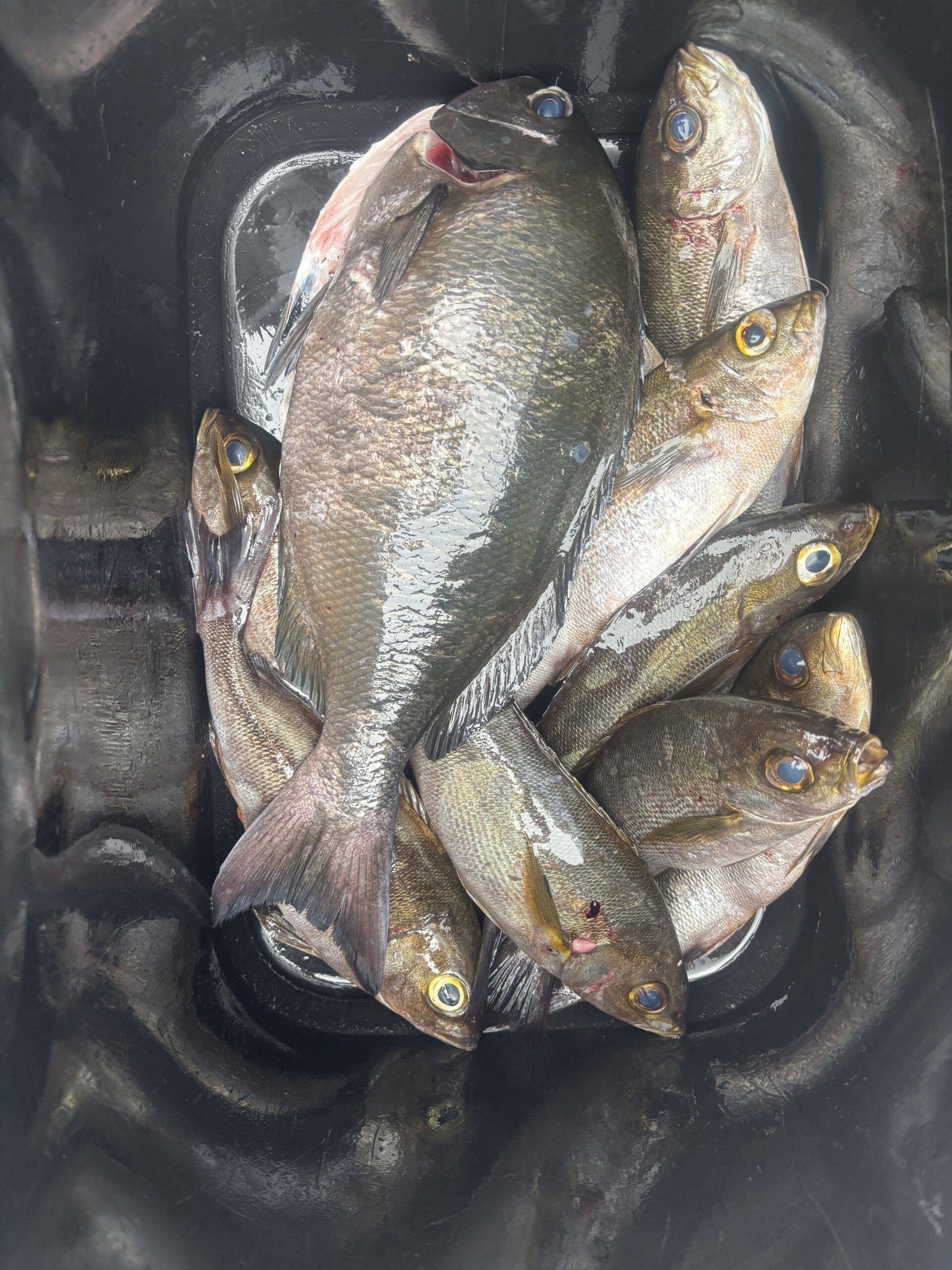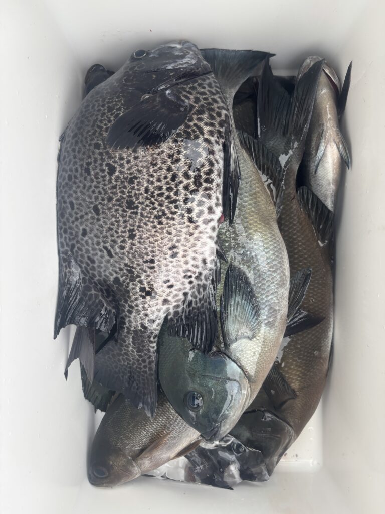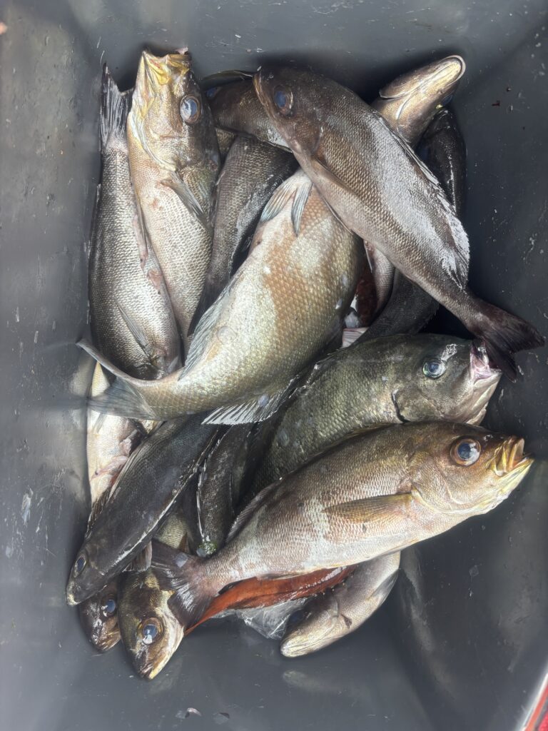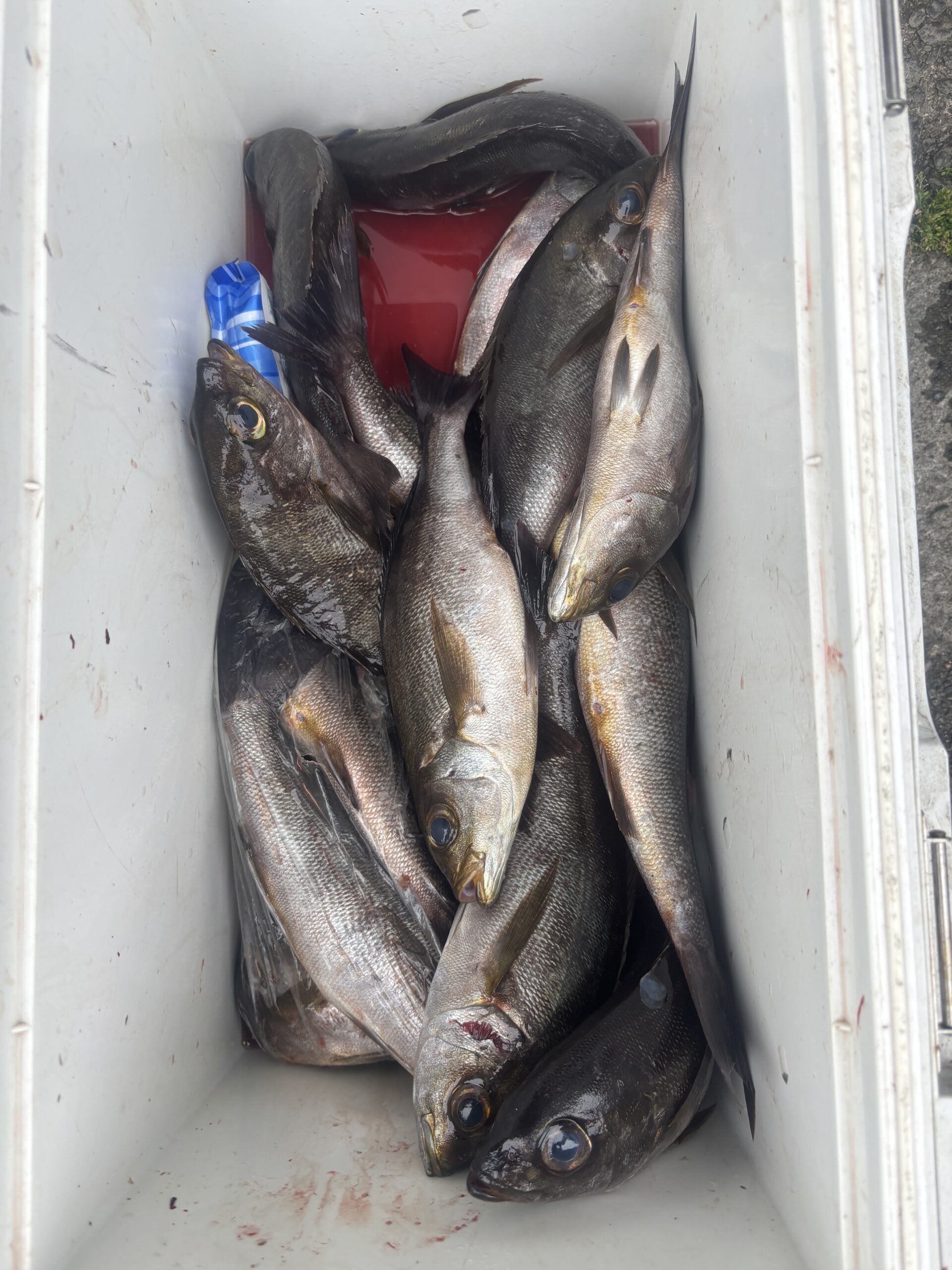 今日は朝の内下り潮がそこそこある感じでしたが、場所によっては終始トロトロの潮でした、尾長メジナの食う棚は相変わらず浅く2ヒロ前後で朝の内は中々顔が見れませんでした、11時過ぎ頃からはようやく顔を出し活性が上がったのか良く口を使います、塀下では尾長メジナの最大と40cmオーバーが多数出ました🎣またアンドロでは石鯛の5キロオーバーも出ています🎣全体的にイサキの活性は上がっていて皆さん良く釣れる感じです🌈