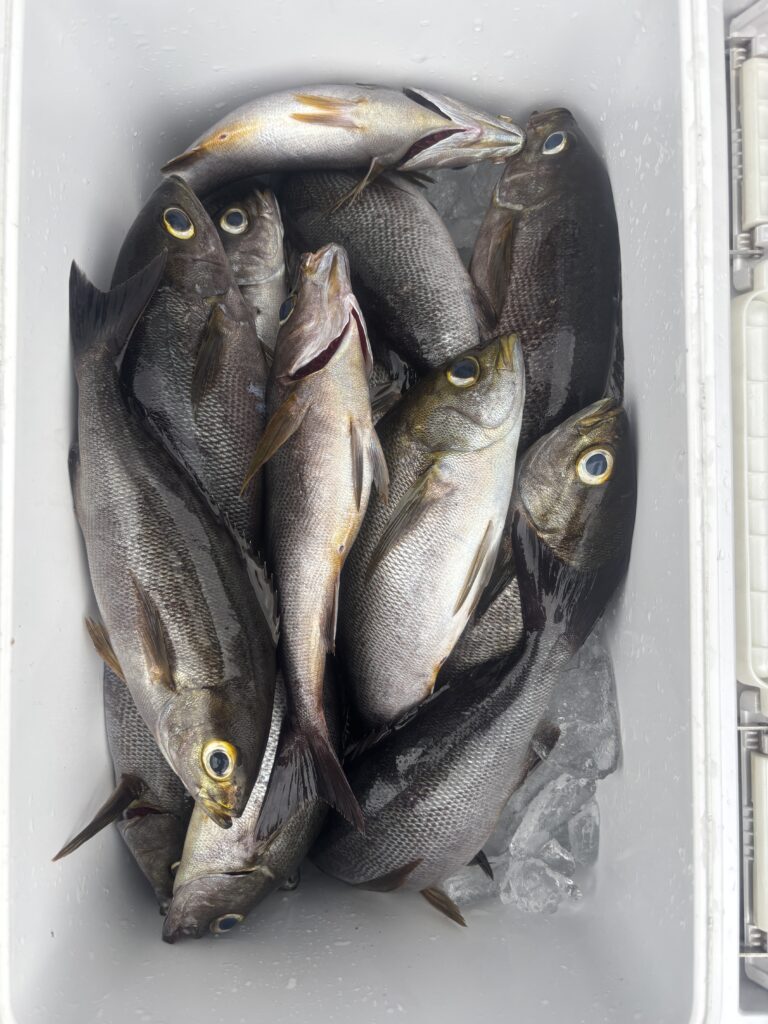 鵜渡根では貴重なカンパチが1枚上がりました、イサキの活性は良く口を使います🎣中でもルアーマンの方がフズシでヒラマサの20~30キロくらいありそうなのを数回掛けファイトしたのですが惜しくもブチ切られるといった場面が数回ありました😭次回に期待大ですね🎣