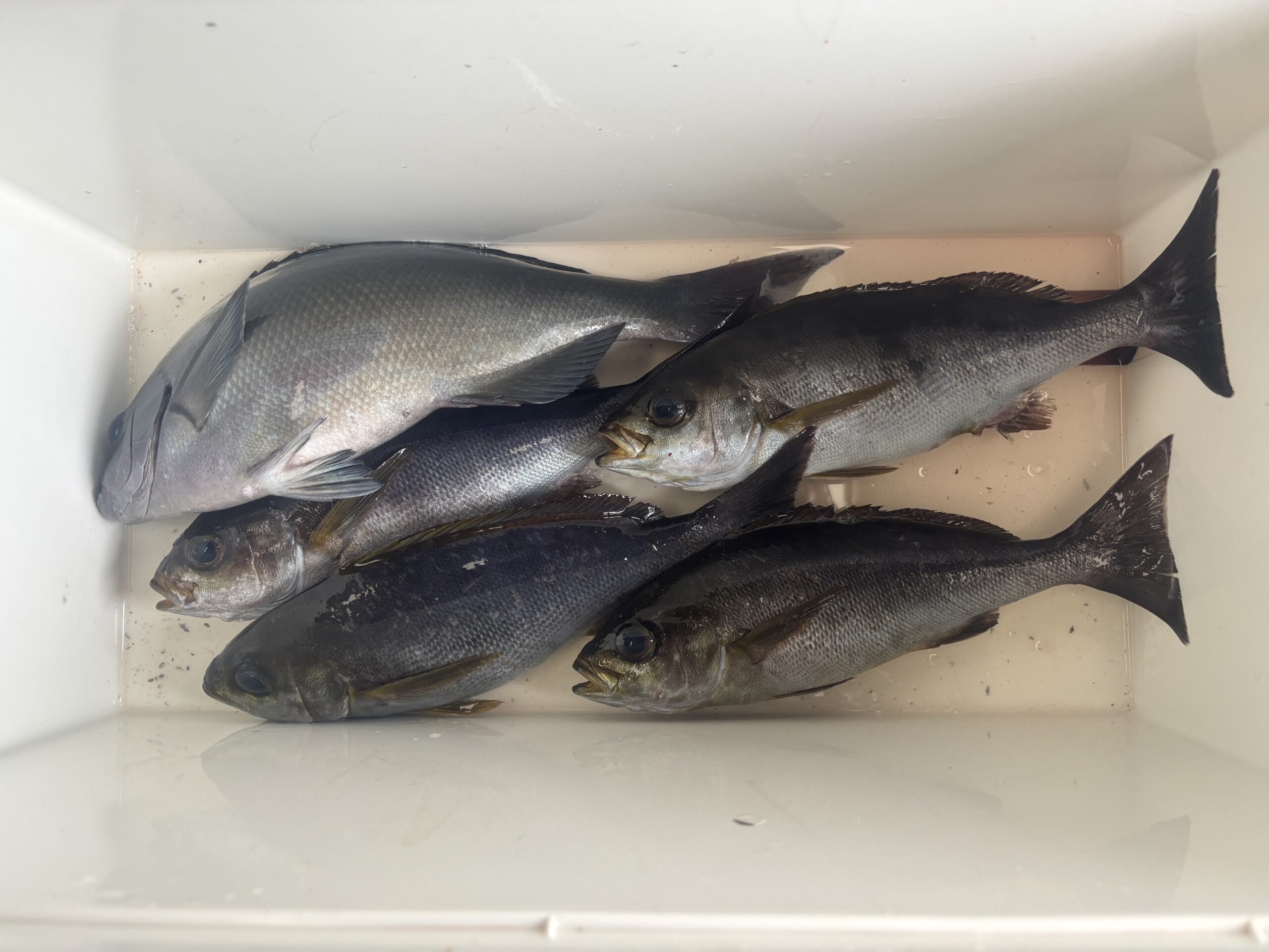 今日は朝から下り潮が少し早く大潮回りになってから水温が20度台まで下がり海の状態が中々安定しません、サラシを狙えば魚は食うのですがアンドロ付近は潮が動かずイスズミによるエサ取りがしつこく苦戦しました、それでもメジナ、イサキは上がりました🎣ルアーマンの方は残念ながらエサ取りも無く不発でしたが、ミツ根沖付近で多数のナブラが目撃されているので期待は持てます🌈今日はちょっと寂しい釣果となりました😭