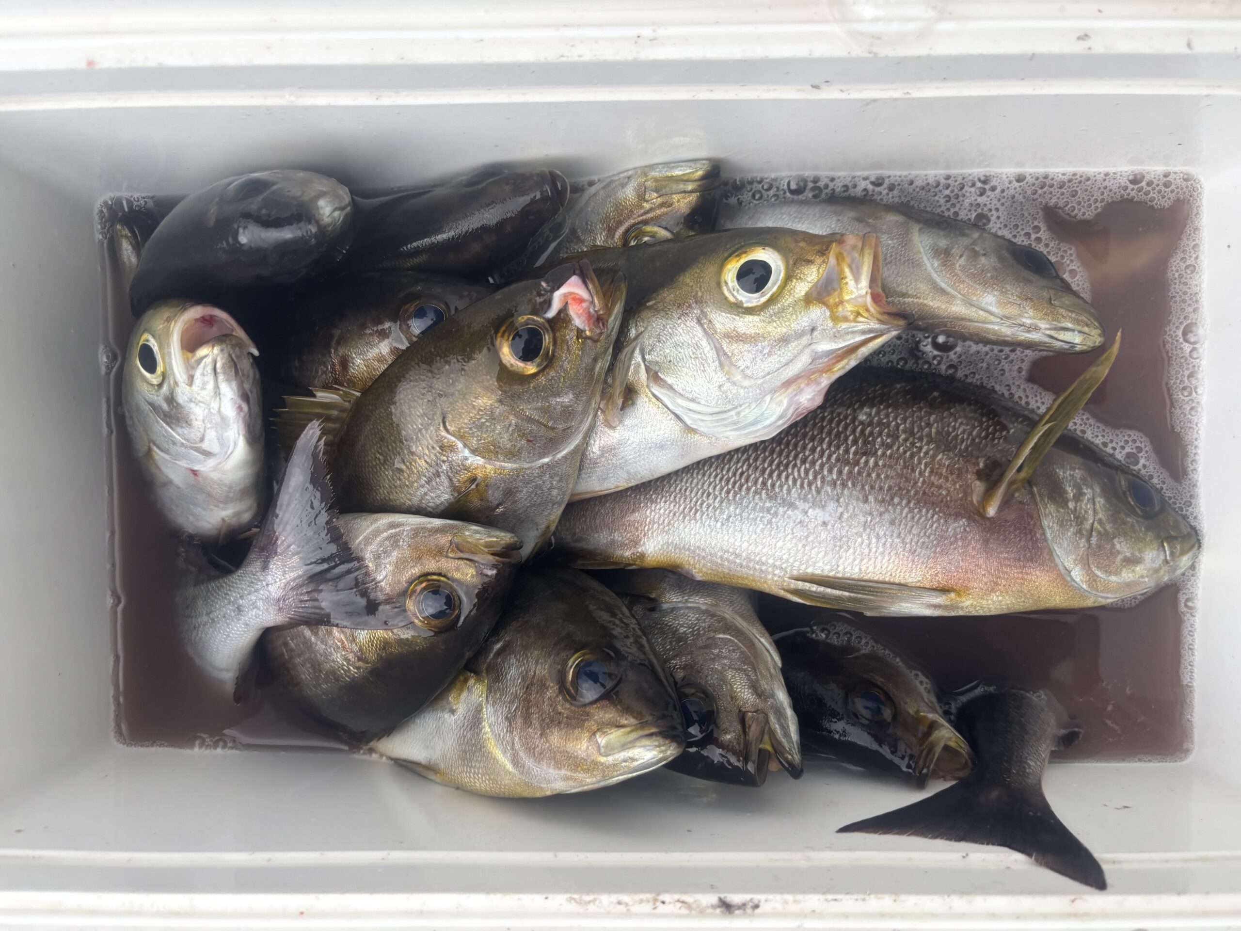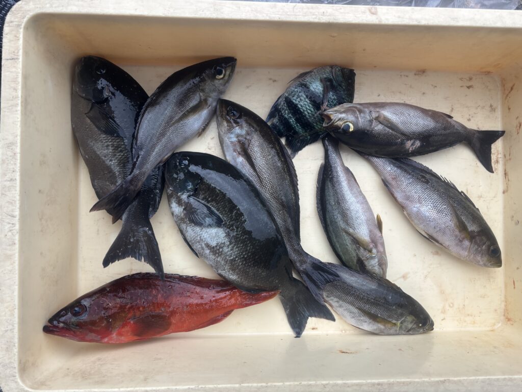 今日は朝の内は下り潮が早く魚の食いは今一でした、サイズ的には小さめで中々渋い状況でしたが本番1.2号付近では13時頃(終盤近く)になると良いサイズのイサキが入れ食い状態になる場面もありました🎣アンドロではシブ鯛、石垣鯛など上がりました、底物の活性も今日は厳しい状態でした、ルアーマンの方はヒラスズキが1枚上がりましたが他の方々は不発に終わりました😭海は凪ていて潮は効いていたので爆釣モードだと思ったのですが、釣果的には少し寂しい感じになりました