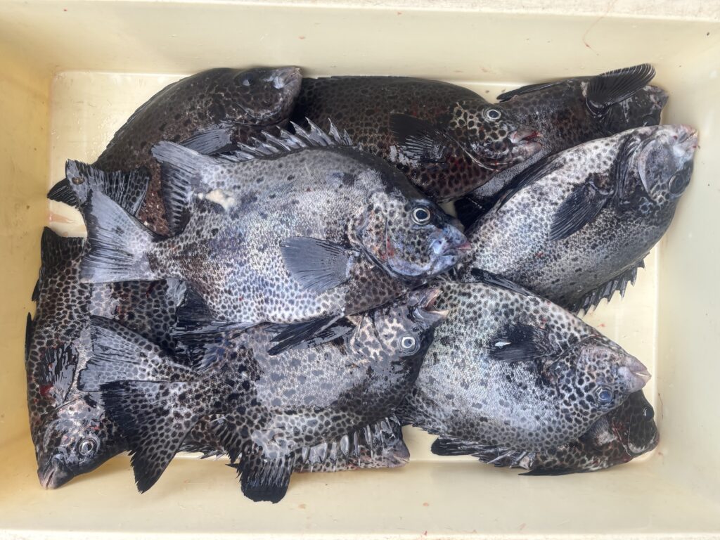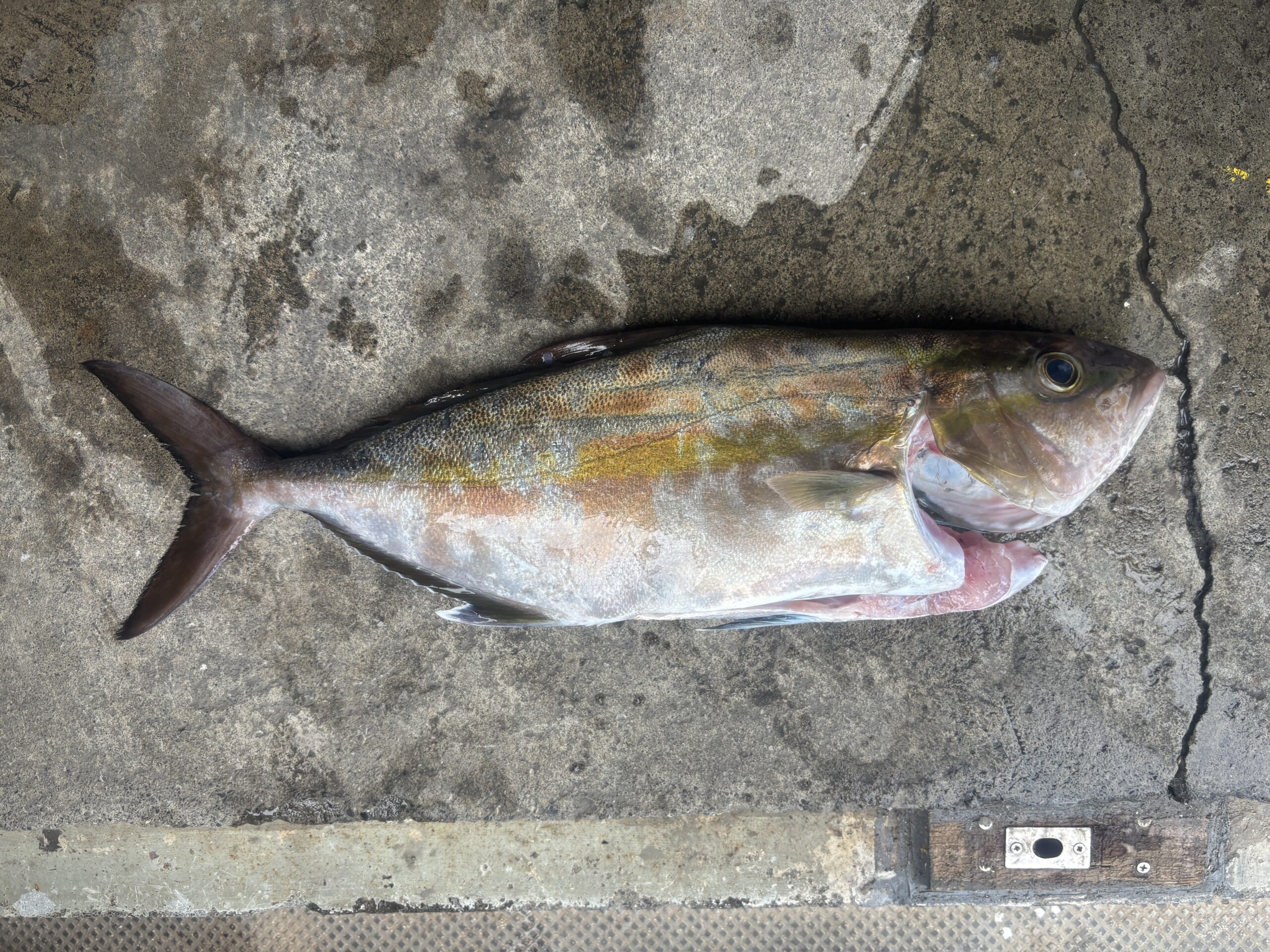 今日は朝の内は下り潮がそこそこ行ってましたが、8時くらいより11時頃まではトロトロの下り潮に変わり、潮の来る方向も南が少しかかっていました🎣潮変わりの潮回りですので場所によってはあまり潮を感じない所もあると思います、底物はイシガキ鯛のあたりは激しく餌が持たないと思える程でしたが、潮がトロトロになってからは食い込まない感じで魚の活性も下がります、釣れるサイズ的にも今日は今一小さく1キロ未満が7割でした、ルアーマンの方は朝の早い潮の時間帯ではトップにも反応はありますがやはり食い込まずチェイスだけでした、潮止まり前にジグ(80g)でカンパチがヒットしこの状況では値千金のヒットでした、その後はシイラやダツで青物の反応も潮が緩くなってからは無くなりました、水色も少し澄んで来ていますので見切られる感じです🎣