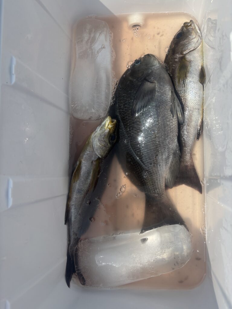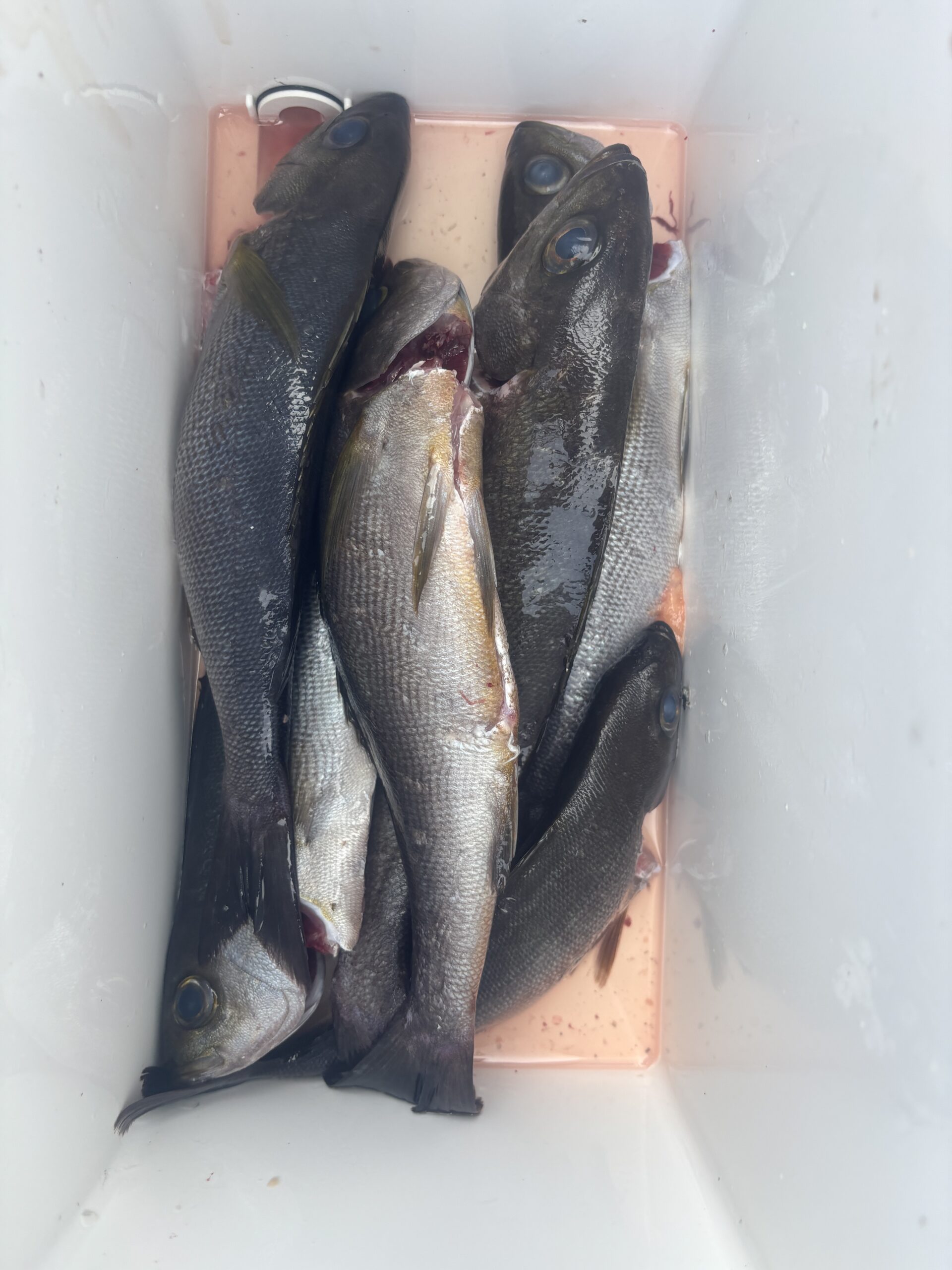 今日は朝の内下り潮がそこそこ行く感じで底物狙いの方はイシガキ鯛のエサ取りもあり良かったのですが、8時頃干潮時を回ってからは下り潮がトロトロになり魚の活性は今一でサラシも殆ど無い状況でした、朝方はサラシもありあまり遠投することなく浅棚の方が食い気がありました、イサキは枚数以上食う感じで一時は入れ食い状態になるほどでクーラーに入りきれない状況でリリースする程でした🎣相変わらずイサキの食いは良く神子元島では良いお土産になると思います、ルアーマンの方は動かない潮と澄み始めた水色に苦戦、それでもカンパチが反応してくれ粘り勝ちをしてくれました、青物も結構な数が入ってきていますので状況次第では期待が持てますね🎣