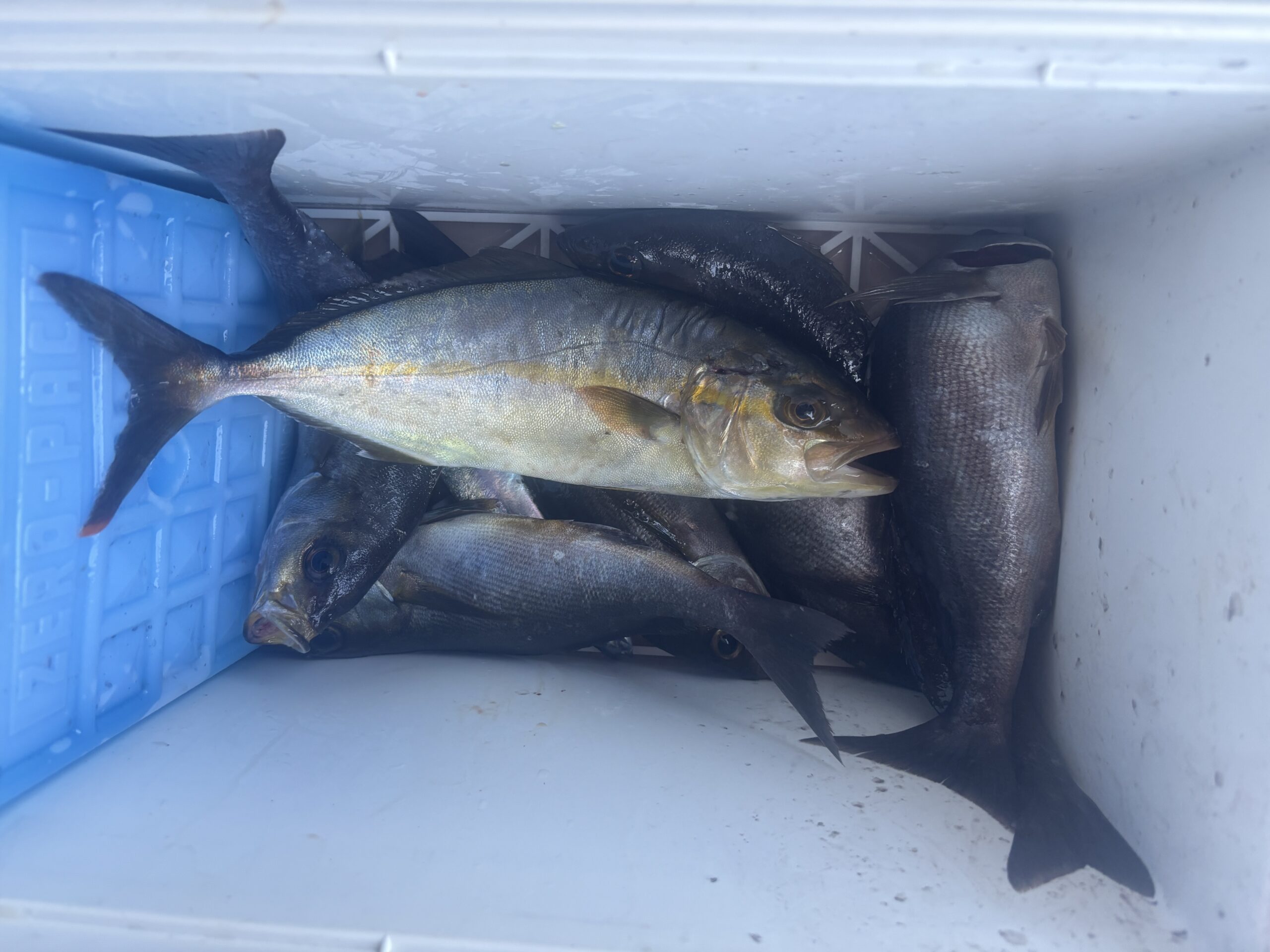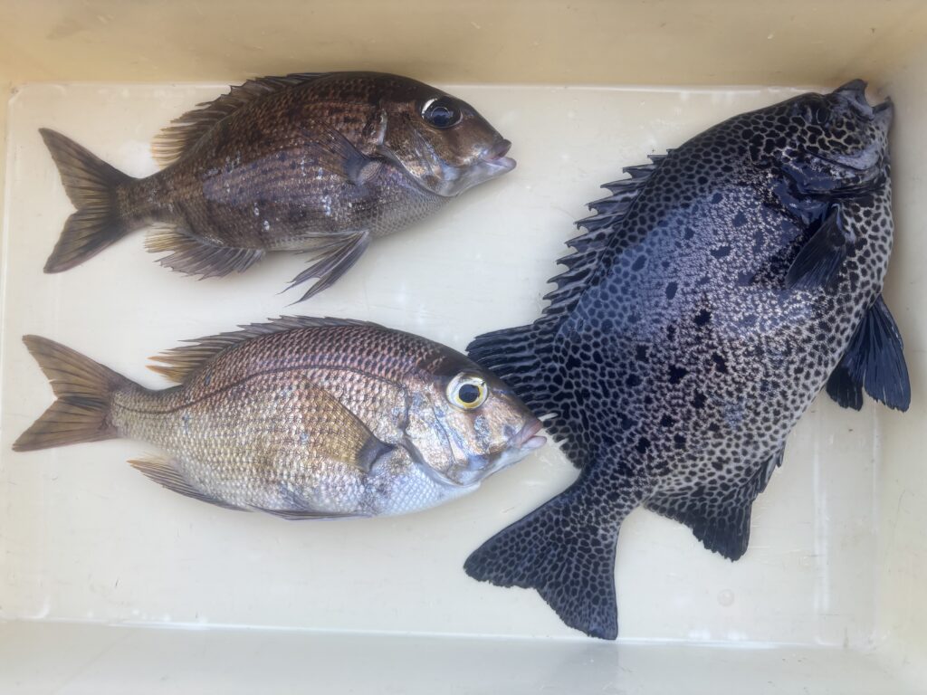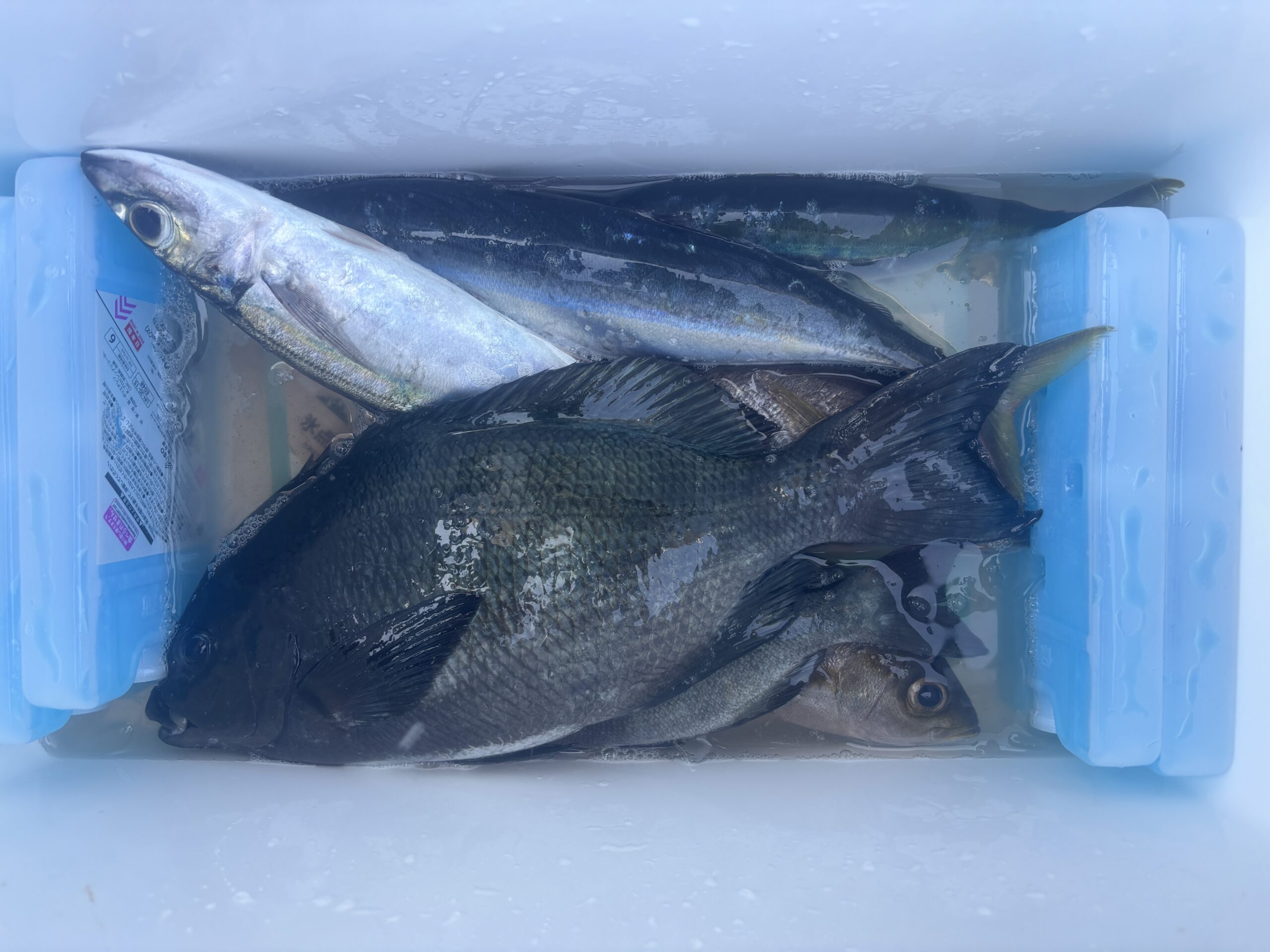 今日も朝から下り潮が入るのですが満潮9時の潮止まりからは場所によりトロトロで沖側にはある程度早い潮が入っている感じでした、それでも潮が当たっている場所ではイサキやメジナがもの凄い数が浮き始めるので水温次第では数釣りも楽しめます、底物は朝から頻繁に当たりが本日はあるので楽しめたみたいです、イシガキ鯛が多い時期ですが今日は釣れれば良型が主でしたので引き味も抜群で釣りの醍醐味が味わえます🎣少し水温が安定していない分ルアーの釣果は日によりムラもある感じですが、適度なサラシがあれば釣果には繋がっています、夜釣りも終盤を迎え始めましたが、最近流行りの高級魚シブ鯛江ノ口回りでは良型が多く混じり、中には1人4~5枚程度の釣果を出していますのでまだまだチャンスがあれば是非狙い目ですね