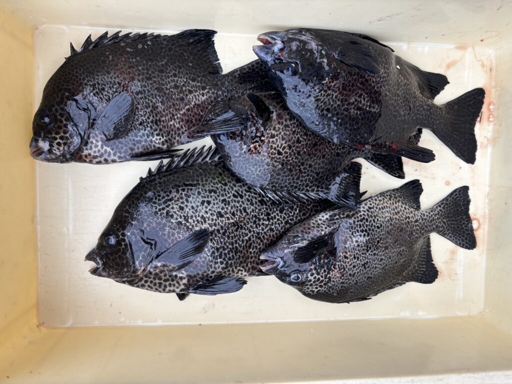 今日は北東風が予報より強く朝の内は21mで場所限定の釣りでした🎣水温も若干下がり気味で、朝の内は上り潮が速く何処もサラシだらけでしたが魚の活性は良く底物も頻繁に当たりがでます、小型が主体でしたが元気に竿を絞り込んでくれます、9時ころからは緩い下り潮に変わりとたんに当たりが無くなりましたが、潮止まり寸前に2キロのクチジロモドキの良型が来ました、当たりエサはヤドカリです🎣ルアーマンは朝方本場3号と4号前でダツが追い掛けられている所で一発ガツンとミノーにアタックがありましたが、その後はカンパチ(ショゴ)のみに終わりました、磯際では細かいベイトはあまり見えませんが沖側にはムロアジやダツがベイトですので一発の期待はあります🎣本日は上物師は居ませんでしたが、この水温であればメジナやイサキの活性はあがってくると思います、今の時期は棚は少し深めで攻めマキエの工夫で尾長メジナ混じりで狙えると思います