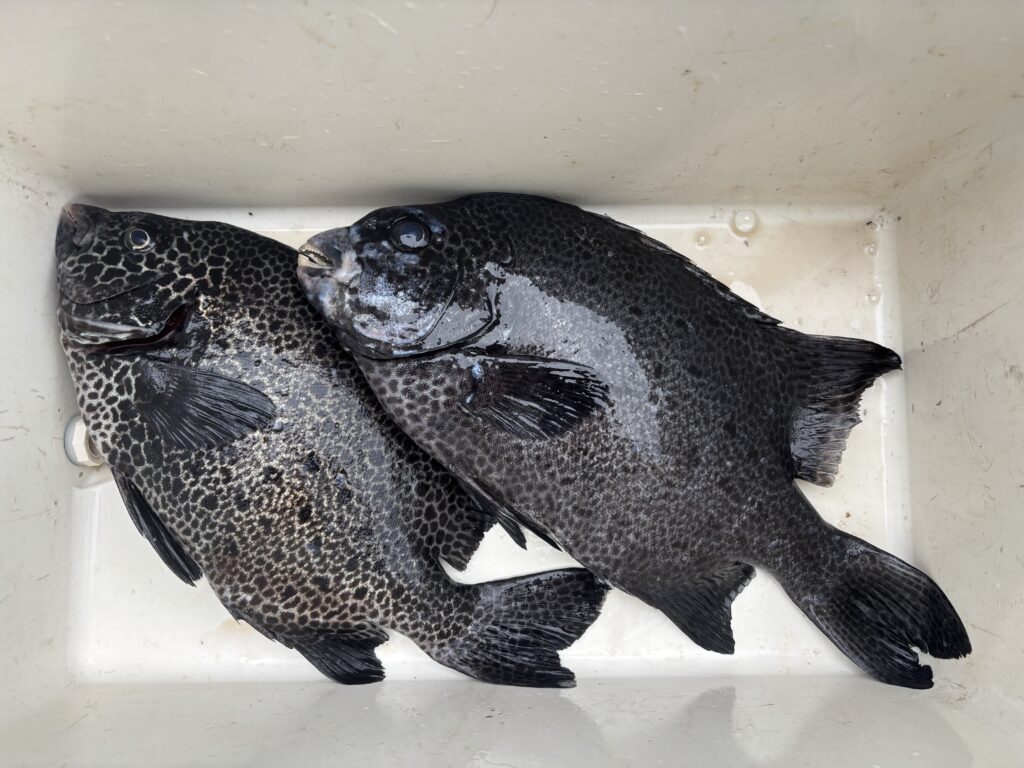 今日は朝の内から略上り潮で下り潮の時間は1時間くらいで、更に北東15m以上吹いていたので場所限定の釣りでした🎣フカセ釣りではエサ取りが多くムロアジが潮のない所では頻繁にエサを取ります、その中でイサキが混じる感じでしたがエサが上手く持った時に口太メジナが当たりました、棚は少し深いみたいですがコマセワークがキーポイントになります、底物は外道ばかりで潮が無い状況でも餌取が激しくガンガセでは2個~3個付けでも当たりが出ないままエサが無くなります🎣水温が少し下がって来ましたが石物の活性あまり良くない状況ですね、捨てオモリを長めに取ると当たりが良く出ますので底潮と表面の差があるみたいですね、また強風に煽られても外道は元気良く竿を絞ってくれます🎣