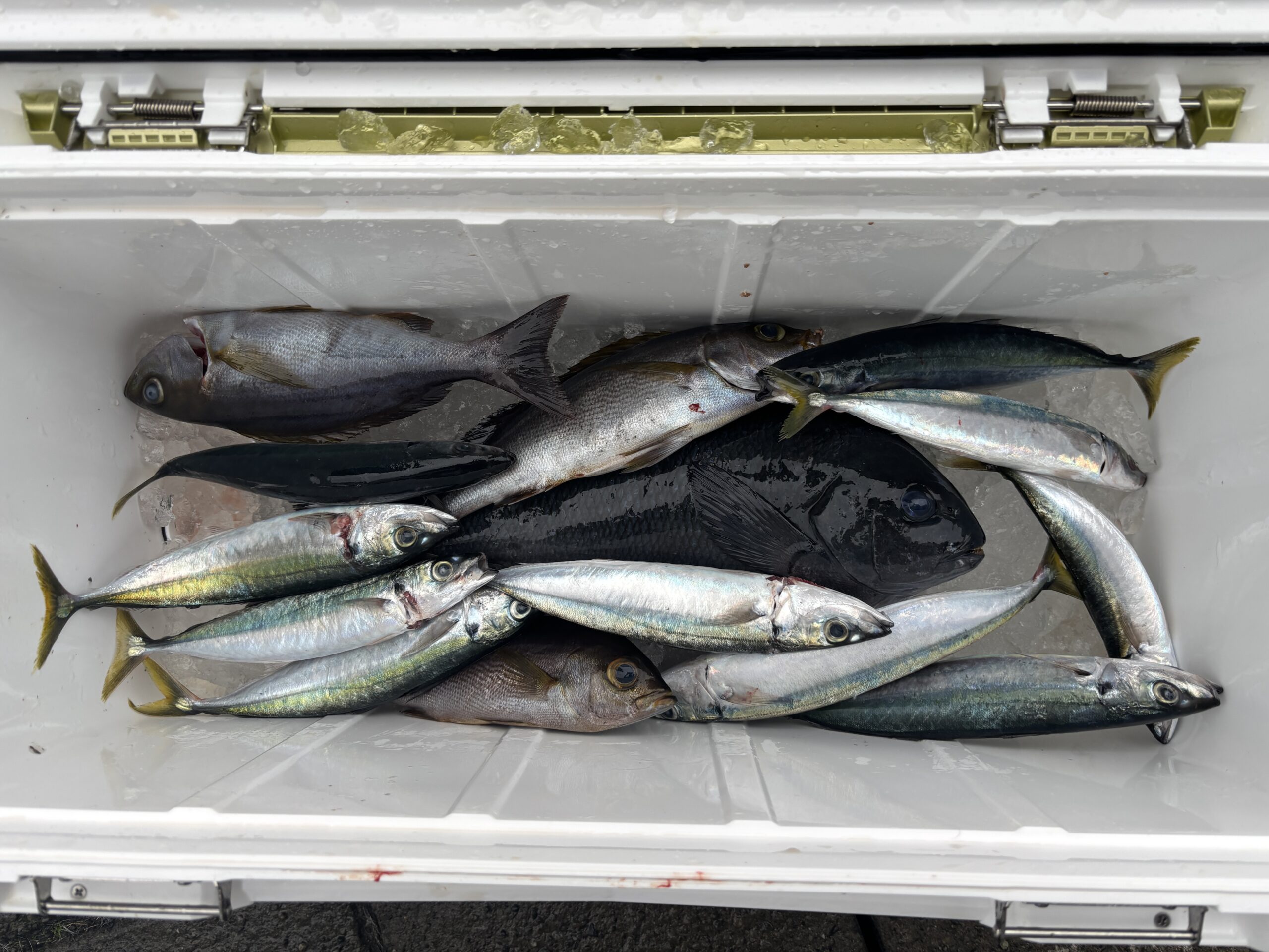 本日も海の状況が悪い中皆さん御苦労様でした、最近黒潮が離れ下り潮の激流は殆ど見なく、逆に上り潮の方が長い時間帯ある日が多く風向きが変わるか、あまり風速が無い日に裏側でも面白い釣りが出来ると思います、フカセ釣りも狙い目になってきていますので、是非神子元島に足を運んでみては如何ですか、スタッフ一同心よりお待ちしております🎣
