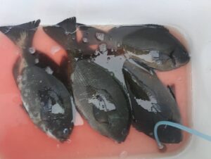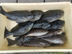 今日は朝の内は上り潮が速く利いていましたが、魚の食いは全体的に今一でした🎣灯台から潮の来る方向を見ているとカメ根から沖に払い出すようで本場側や沖青根側には殆ど潮が利いていない感じでした、しかし裏ハトでは大型尾長メジナに痛恨のハリス切れが3回あり潮のヨレを狙い撃ちにして仕掛けを止めた状態でのヒットパターンでした、また 本場側でもサラシを上手く味方にした釣り方でもタモ入れ寸前でのバラシもあり確実に大型も確認されています、10時頃からは昨日と違い緩いですが下り潮に変わりました、やはりこの潮向きですと口太メジナが食い出す感じで、棚は3ヒロから少ししたの状況でした🎣残念ながらお昼を過ぎた頃から西風13m以上吹き始め仕掛けを入れるのに苦労しますが、上手く仕掛けを馴染ませれば魚の反応はありました、全体的には釣れる時間帯は短いので集中してみて下さい